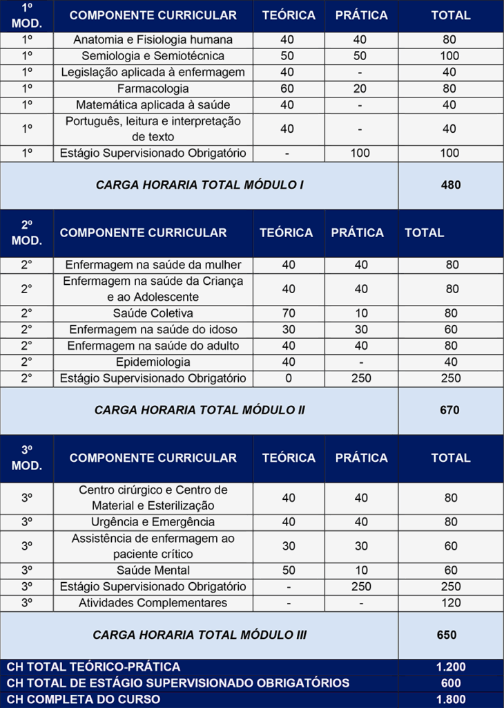 Reconhecido pelo MEC com nota máxima, o curso técnico em Enfermagem oferecido pelo CENATEC possui 1.800 horas de formação, sendo 1.200 horas de ensino teórico-prático e 600 horas de estágio supervisionado.